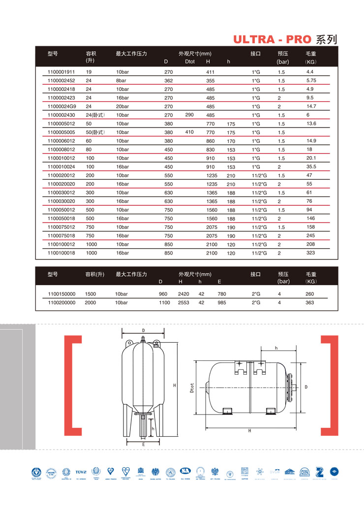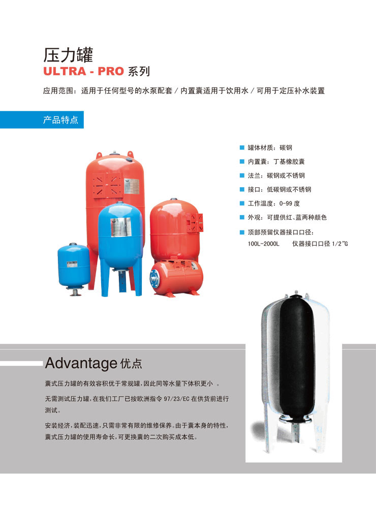 A1:壓力罐主要由鋼制或不銹鋼外殼罐體、內置膠囊或隔膜、進(出)水接口、充氣氣門芯、預留壓力表接口等部分組成。